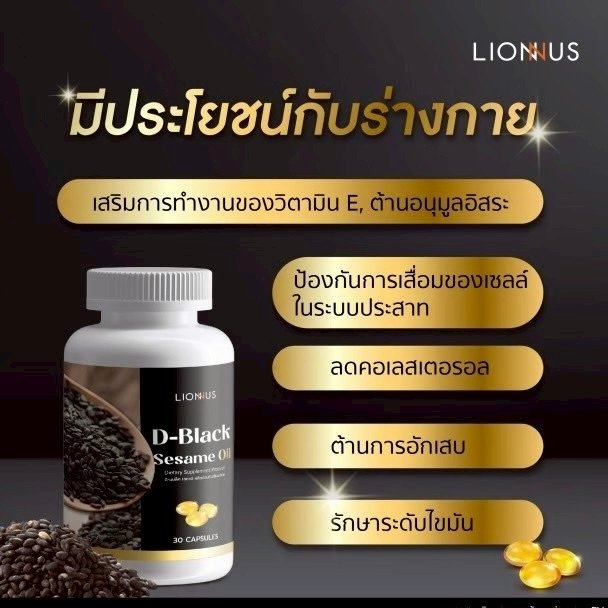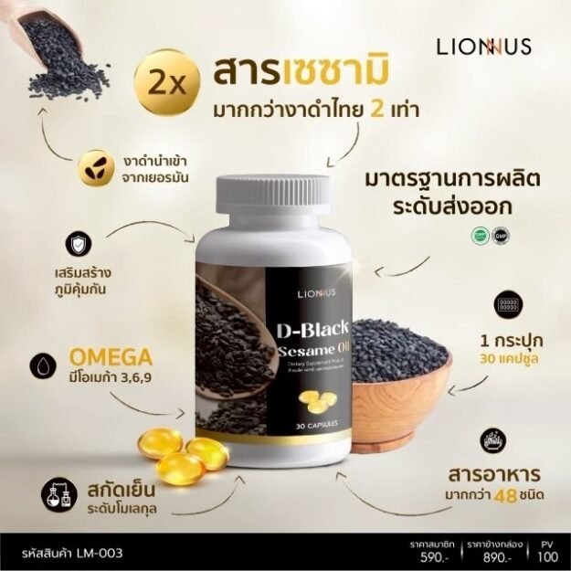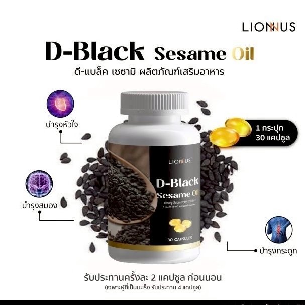 “D-Black Sesame Oil น้ำมันงาดำสกัดเย็น” คือผลิตภัณฑ์เสริมอาหารที่ได้จากสารสกัด “เซซามิน” ที่พบมากในงาดำโดยผ่านกรรมวิธีการสกัดเย็นโดยโรงงานผลิตที่มีมาตรฐานสูงเป็นน้ำมันงาดำในรูปแบบพร้อมรับประทาน ขนาด 500 มิลลิกรัม เนื่องจาก “งาดำ” ได้รับการยกย่องว่าเป็นถึง “ราชินีแห่งธัญพืช” และสารสกัดที่อุดมไปด้วยคุณประโยชน์ในการช่วยส่งเสริมและดูแลสุขภาพโดยเฉพาะในด้านของการลดการอักเสบของข้อต่อและกระดูกได้เป็นอย่างดีจึงเป็นที่มาของผลิตภัณฑ์เสริมอาหารเพื่อสุขภาพที่จะส่งต่อคุณประโยชน์ต่าง ๆสู่มือคุณอย่างครบถ้วน